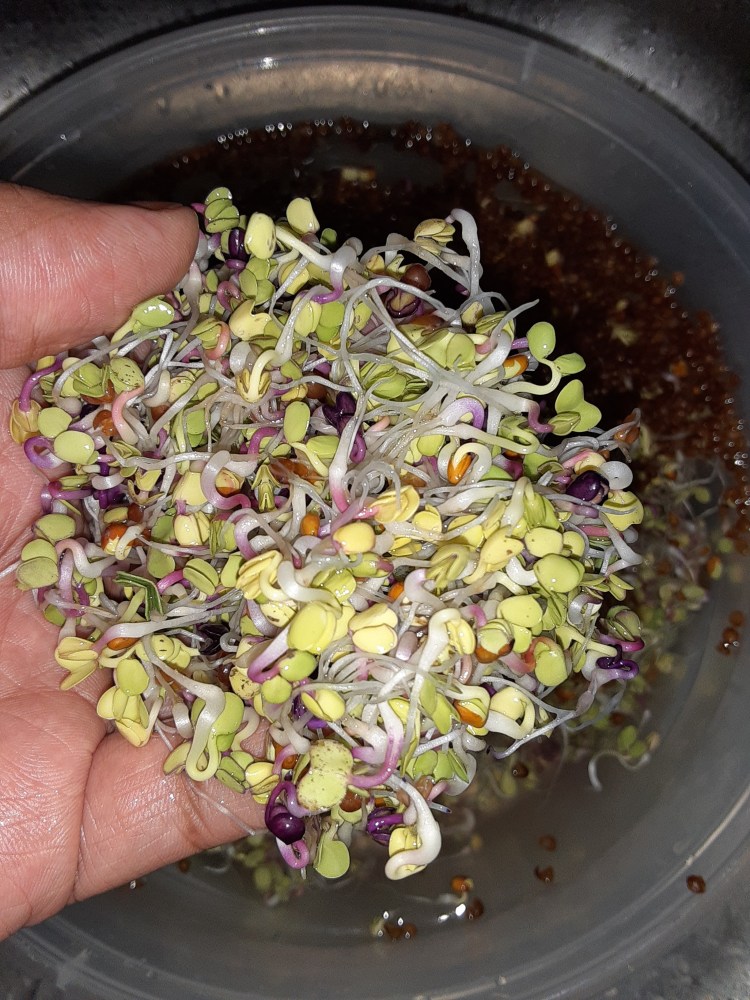 What I have noticed is that in the whimsical world of sprouting, jars become tiny incubators of life. As seeds snugly nestle within the glass confines, a magical transformation unfolds. It’s like a miniature garden party where each sprout dons its green party hat and stretches towards the lid, eager to join the celebration of growth. The jar becomes a dance floor for the sprouts, swaying to the rhythm of water and sunlight. With each day, the once dormant seed burst into a lively parade of freshness, turning the jar into a vibrant spectacle of natures own confetti. It’s a “sproutacular affair” where every jar tells a story of resilience, renewal.